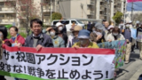 私たちはこの間、「ガザ地区への大量虐殺いますぐやめよ」「交野市から10㎞圏内、祝園にミサイル弾薬庫はいらない」「私たちは戦争に協力しない」と憲法と暮らしを考える会と共同で、集会・パレード、写真・パネル展、緊急スタンディングを行なってきました。多くの市民の方の関心を集め、星田駅の緊急スタンデイグでは、訴えに列をなして高校生がじっと聞いていたのが特徴的でした。