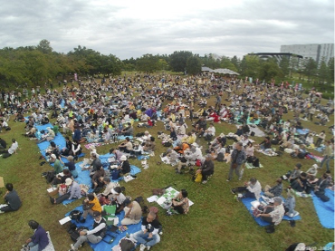 10月19日(日)9時過ぎから交野市駅に集会参加者が集まり、定刻通りマイクロバスが到達。交野市から17名、枚方市から11名を乗せ、会場のけいはんな記念公園をめざしました。マイクロバス参加者以外でも多くの方が参加しました。